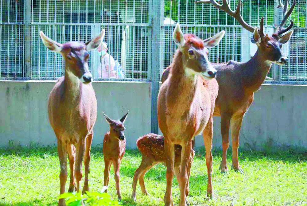 據(jù)介紹,五年來(lái),四只“友誼之鹿”在飼養(yǎng)員的精心照料下茁壯成長(zhǎng),并在這里繁衍后代。2021年8月,白唇鹿“家族”雙喜臨門,雄性白唇鹿“京京”分別與雌性白唇鹿“援援”和“念念”生下了寶寶,分別取名“健健”和“康康”?,F(xiàn)如今,兩只小家伙能吃能睡,快樂(lè)成長(zhǎng)。