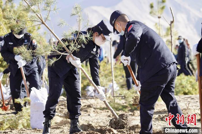 3月16日,民警正在栽植樹苗?!∷骼蚀瓮? 攝