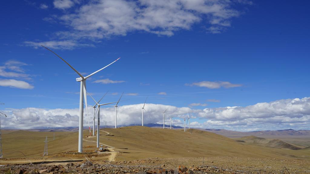 西藏措美哲古風(fēng)電項(xiàng)目一處風(fēng)電機(jī)組。(三峽集團(tuán)西藏能源投資有限公司供圖)