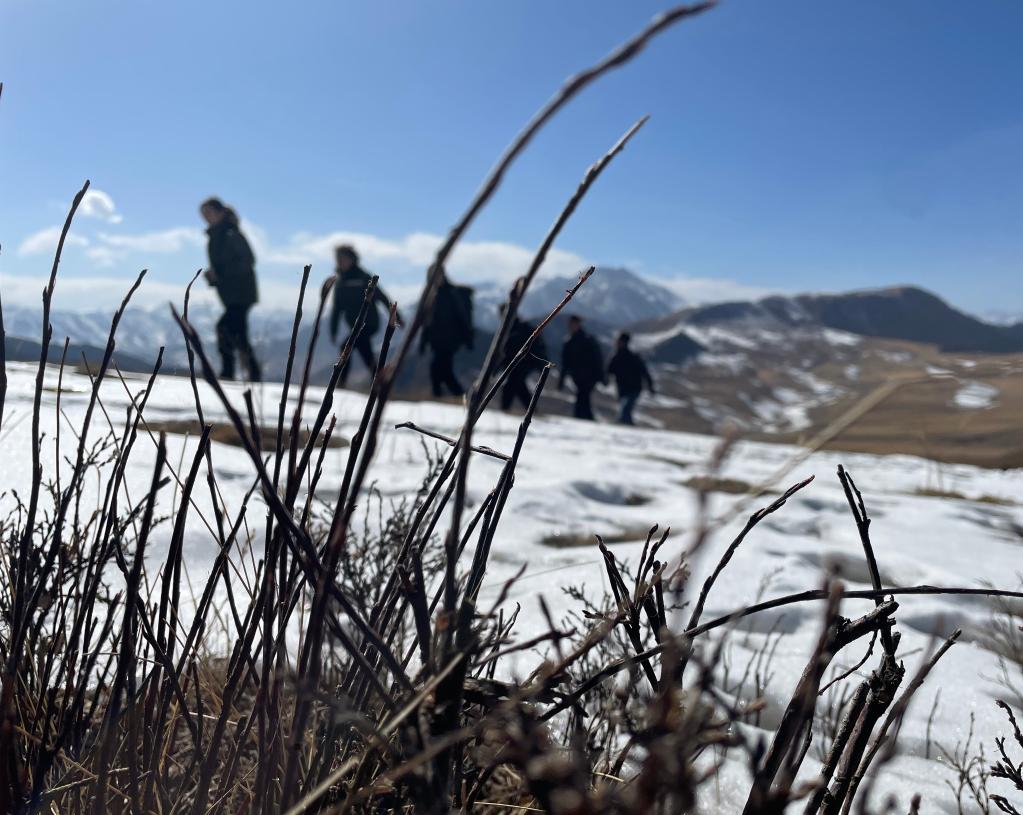 張麗萍(左一)和隊(duì)員們?cè)谄钸B山國(guó)家公園進(jìn)行巡護(hù)(2023年3月7日攝)。新華社記者 李琳海 攝