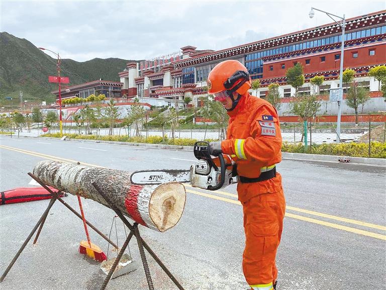 夏日的陽(yáng)光溫暖宜人,透過(guò)稀薄的云層將大地映照得一片明亮……在昌都市森林消防支隊(duì)野外駐訓(xùn)場(chǎng),消防員配合默契地忙碌著,彼此間交流著簡(jiǎn)短而高效的口令。有人把帳篷拆解成零件,有人裝卸救援裝備,有人檢查車輛安全性能……