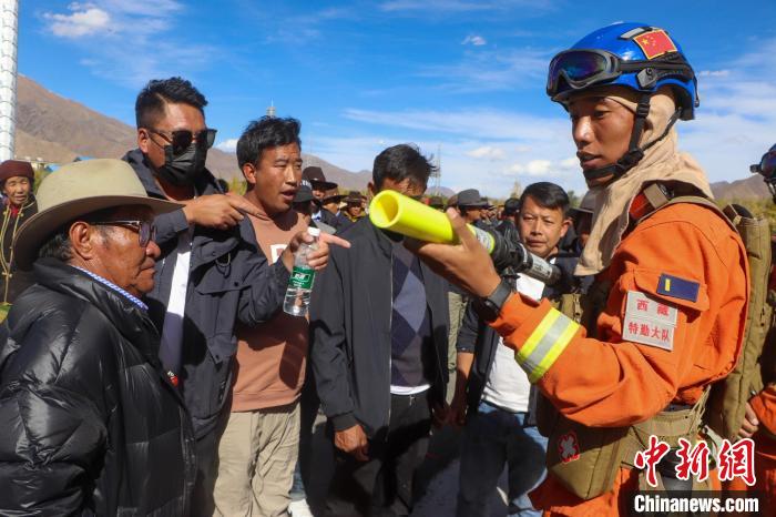 圖為演練結束后,森林消防進行裝備講解。拉薩市森林消防大隊 供圖