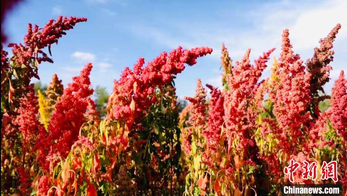 金秋十月,地處中國“聚寶盆”柴達(dá)木盆地腹地的青海省海西州烏蘭縣迎來藜麥成熟豐收季,姹紫嫣紅美不勝收。