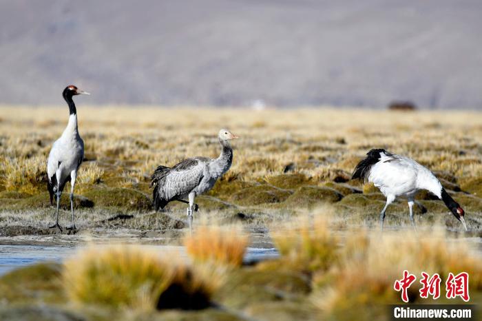 黑頸鶴是全球十五種鶴類中,唯一在高原地區(qū)繁殖和越冬的鶴類,屬中國國家一級保護野生動物。近日,中新社記者走進西藏那曲申扎縣這一黑頸鶴的重要繁殖地,了解“高原精靈”黑頸鶴的越冬遷徙。