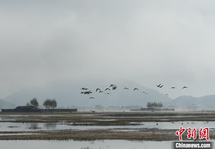 逾300只黑頸鶴飛抵云南納帕海