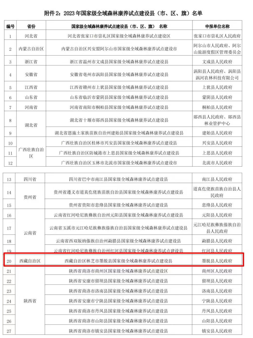 西藏唯一!墨脫縣入選2023年國家級全域森林康養(yǎng)試點建設(shè)縣