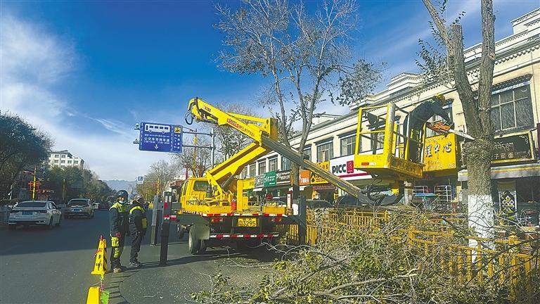 連日來(lái),拉薩市相關(guān)部門(mén)開(kāi)展街道冬季樹(shù)木修剪工作,保障樹(shù)木健康生長(zhǎng)、安全越冬的同時(shí),促進(jìn)了城市街道的綠化美觀。