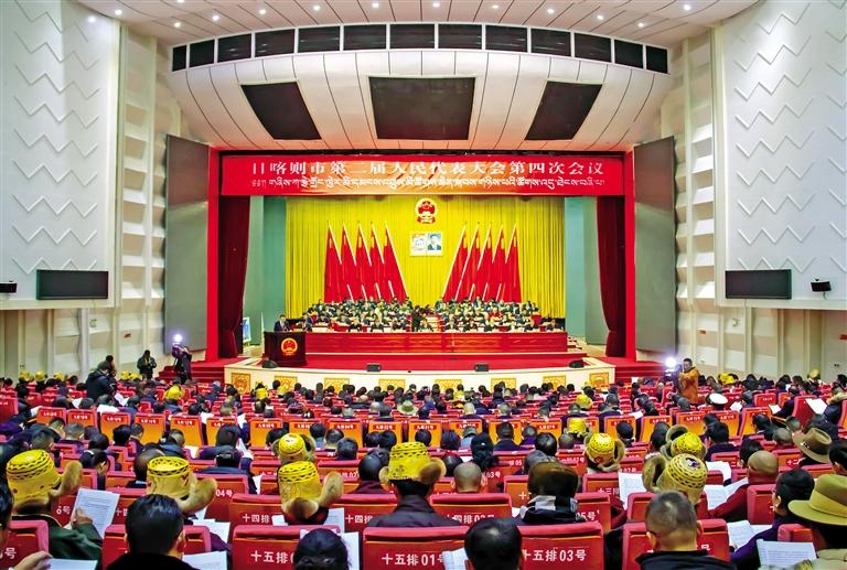 圖為日喀則市第二屆人民代表大會第四次會議開幕現(xiàn)場。