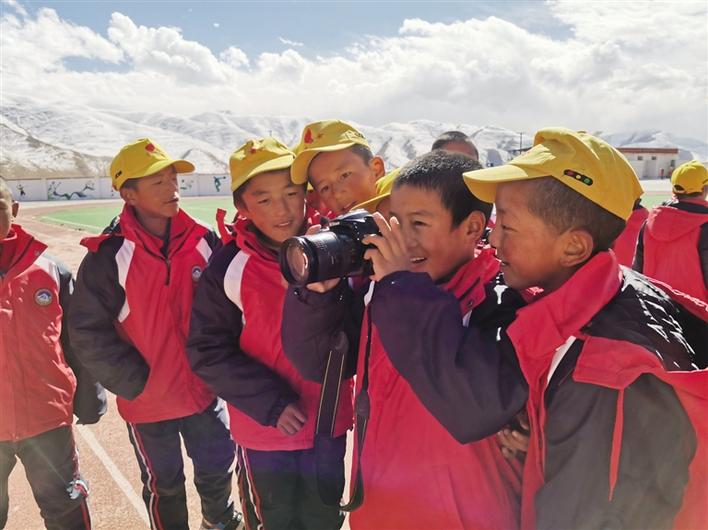 2019年9月26日,自我們面向全區(qū)發(fā)起公益名師招募活動起,各種報名電話絡(luò)繹不絕,其中有不乏來自區(qū)外的熱心人士。最終根據(jù)活動計劃,我們篩選了旺杰群培、陳明桃、仁增、范思宇幾位老師分別為孩子們教授足球、藏棋、音樂舞蹈、美術(shù)課。第一節(jié)音樂課上完,當(dāng)我們再去上美術(shù)課的時候,六年級一班的學(xué)生們蜂擁至我們跟前,“老師,仁增老師什么時候來上課?”“仁增老師還記得我們嗎?”