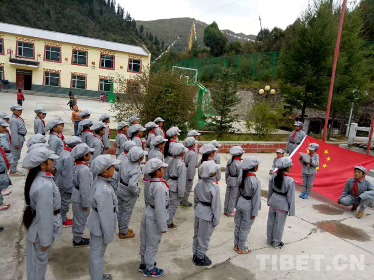圖為班瑪紅軍小學(xué)學(xué)生在參加學(xué)校舉辦的紅色活動(dòng)