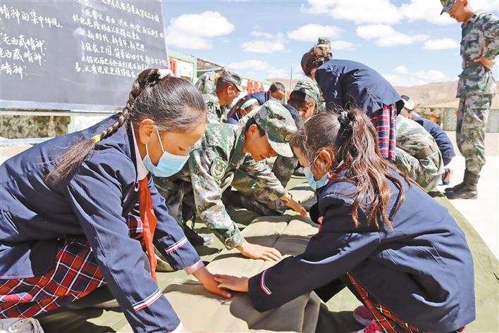近日,西藏軍區(qū)某合成旅組織開展“軍營開放日”主題活動,邀請駐地小學(xué)生參觀軍營。開放日當(dāng)天,官兵們分小組帶領(lǐng)同學(xué)們參觀榮譽室,體驗整理內(nèi)務(wù)等,并為同學(xué)們上了一堂精彩的國防教育課,進(jìn)一步增強同學(xué)們的國防意識。