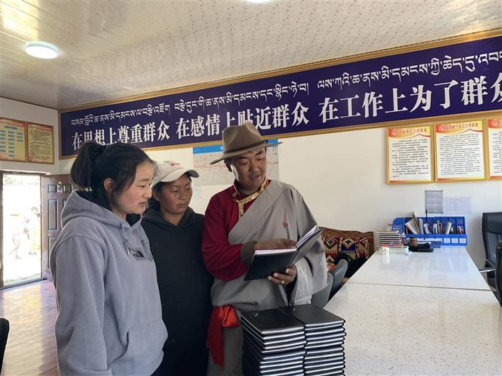 圖為察隅縣古玉鄉(xiāng)古井村黨支部書記羅布扎西在給村里的“雙聯(lián)戶”黨員講解如何做黨員筆記。西藏日報記者 張猛 本報通訊員 魯茸七林 攝
