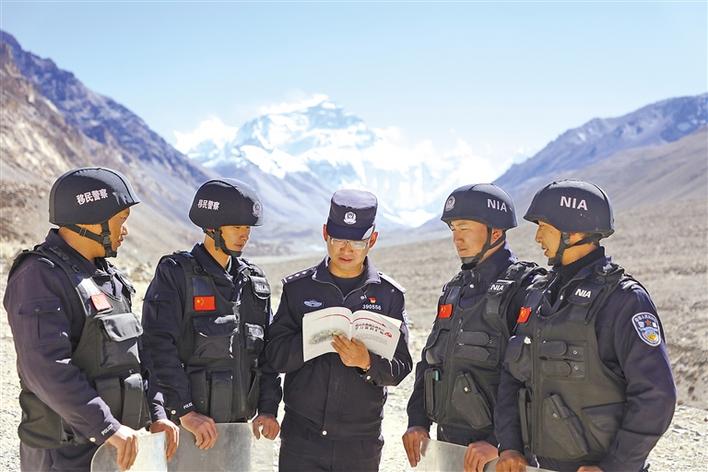 圖為珠峰邊境派出所民警們在執(zhí)勤途中開展學習。王杰學 攝