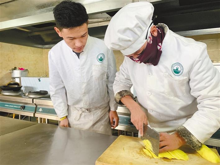 圖為那曲吉薩職業(yè)技能培訓(xùn)學(xué)校烹飪班學(xué)員在學(xué)習(xí)紅案技能。