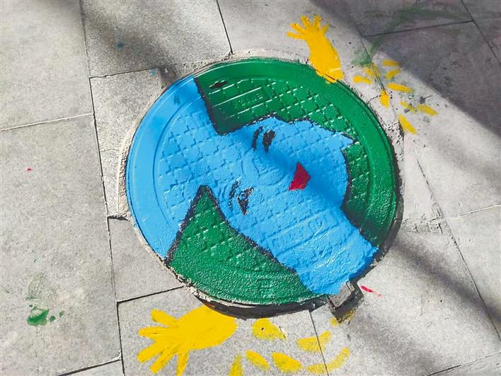 以環(huán)保、垃圾分類為主題的各種彩繪圖案覆蓋上了井蓋,使得原本黑乎乎的井蓋一下變得活潑生動(dòng)起來。