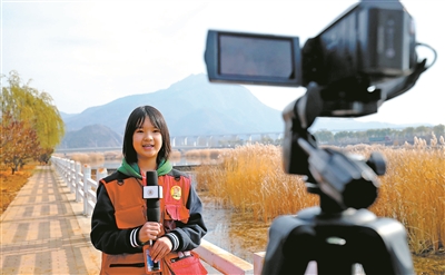“金秋時節(jié),聽說清水河又飛來了白天鵝,我們特意來到河邊探訪一下……”太師屯鎮(zhèn)中心小學(xué)校園電視臺小記者實地采訪、精心錄制,專題節(jié)目《守護天鵝》通過校園電視臺向師生及家長播出。樊世剛 攝