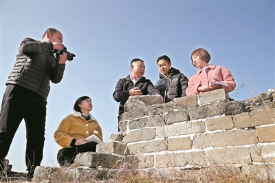 “讓每一塊城磚開口,讓每一處遺址說話。”古北口鎮(zhèn)中心小學(xué)校長徐國文(左三)帶領(lǐng)教師把教研活動搬到了長城上,探討如何打破課程設(shè)置“壁壘”,在考察、尋訪、探究、實踐中培養(yǎng)學(xué)生堅毅品格。樊世剛 攝