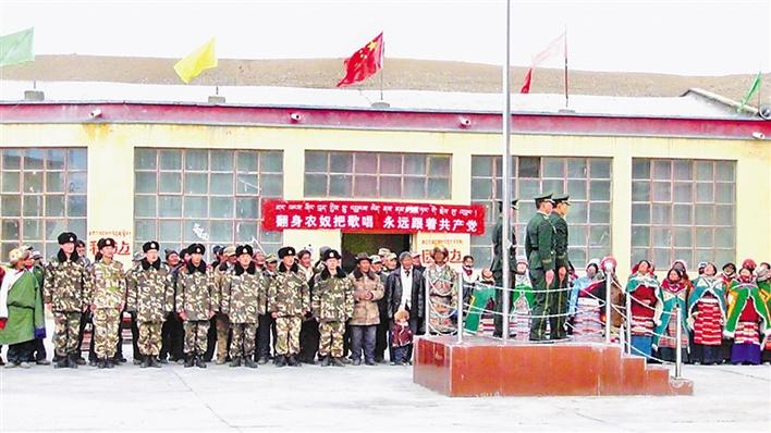 圖為3月28日,烏江村軍民聯(lián)合開(kāi)展“翻身農(nóng)奴把歌唱 永遠(yuǎn)跟著共產(chǎn)黨”升國(guó)旗活動(dòng)。