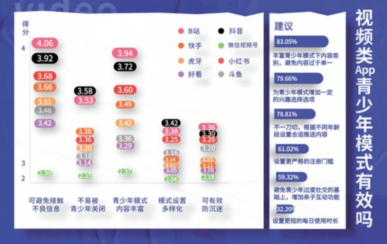 面對(duì)目前各平臺(tái)青少年模式良莠不齊的現(xiàn)狀,參與測(cè)評(píng)的大學(xué)生也有自己的見(jiàn)解。在剛剛畢業(yè)1年的95后教師姜煒眼里,部分軟件青少年模式下推薦的內(nèi)容不能滿足青少年的興趣?!昂每匆曨l給我推薦的都是動(dòng)畫(huà)片,我教的高中生不太感興趣;小紅書(shū)的青少年模式入口有點(diǎn)難找,找到以后推薦給我的都是考研相關(guān)內(nèi)容,對(duì)未成年人來(lái)說(shuō)可讀性不高;斗魚(yú)、虎牙這類(lèi)直播平臺(tái),本身大部分都是游戲類(lèi)內(nèi)容,青少年模式下幾乎大多數(shù)內(nèi)容都會(huì)被屏蔽,我相信任何使用這兩款軟件的青少年都不愿意使用青少年模式。”不過(guò),他給抖音和B站打了高分?!斑@兩款軟件的推送內(nèi)容除了有興趣類(lèi)的,還有一些名師課程,符合青少年的興趣?!?/p>