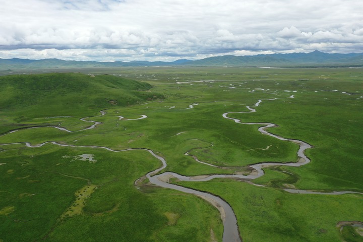 瑪曲縣阿萬(wàn)倉(cāng)濕地。新華社記者 文靜 攝(無(wú)人機(jī)照片)