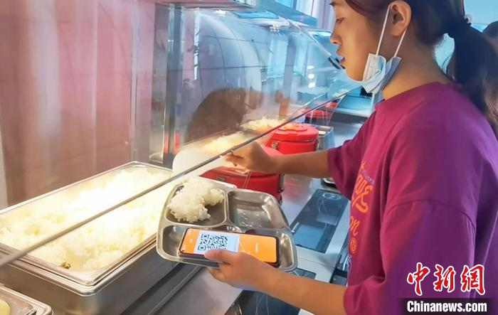 圖為9月中旬,酒泉職業(yè)技術學院學生用“自助打飯神器”按克打飯,按需取餐。 史靜靜 攝