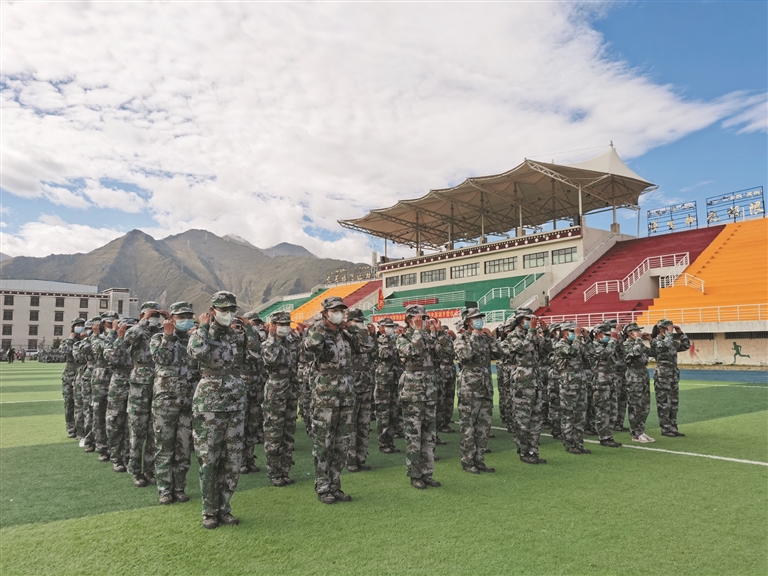 該校學(xué)生工作處主任次仁班旦說:“在校黨委的高度重視下,多次醞釀、精心部署,學(xué)校開展了2021級(jí)新生軍訓(xùn)。我們希望通過軍訓(xùn)增強(qiáng)學(xué)生的愛國主義意識(shí),增強(qiáng)國防教育意識(shí),把規(guī)矩、紀(jì)律納入軍訓(xùn)的課程當(dāng)中來,讓學(xué)生守規(guī)矩、學(xué)知識(shí)、學(xué)技能,鍛煉學(xué)生的意志品質(zhì)?!?/p>