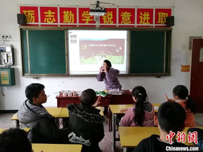 圖為西安局集團公司職工孟露深入楊莊小學,為當?shù)貙W生開展支教工作?!钤砾i 攝