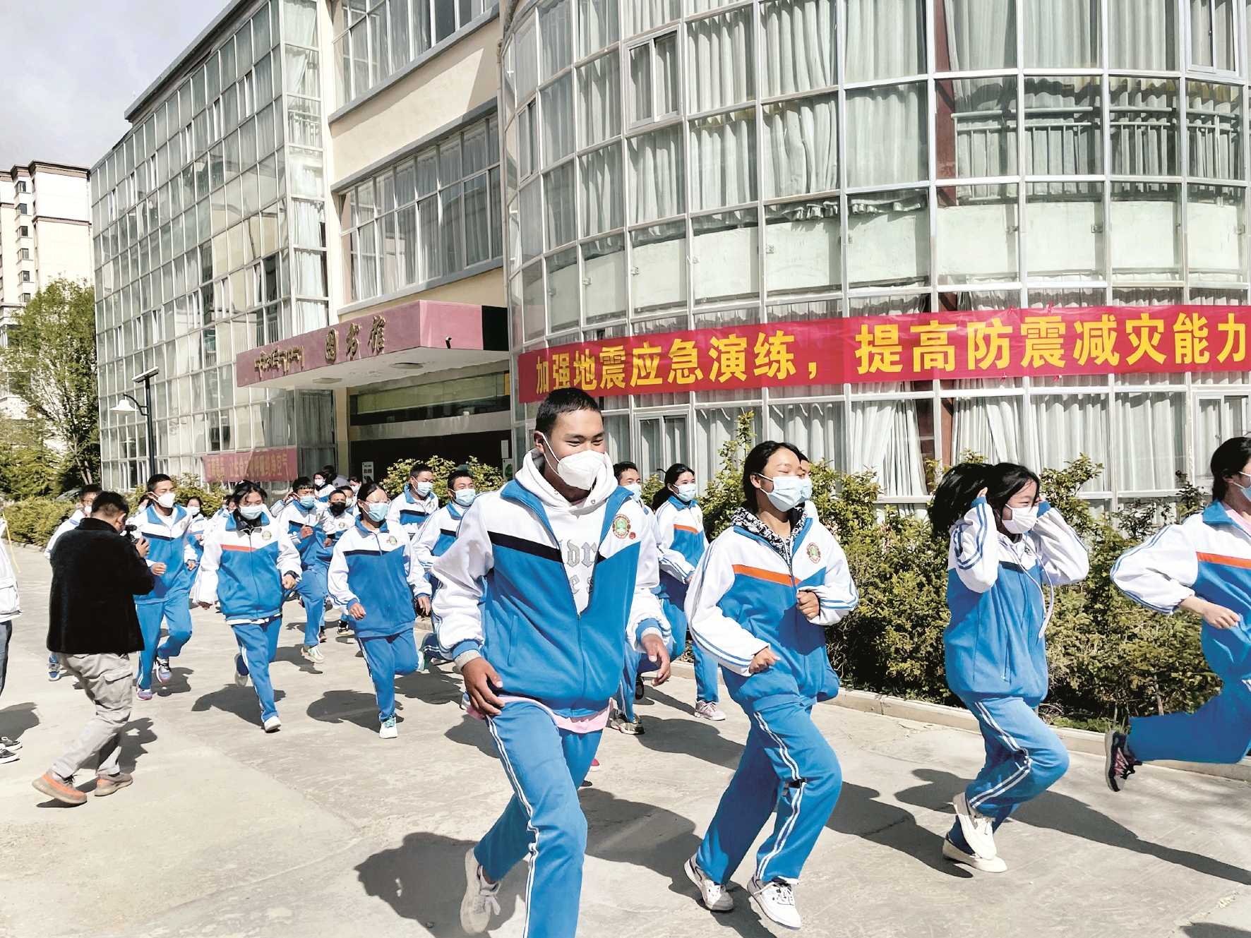 圖為拉薩市第三高級(jí)中學(xué)組織在校師生開(kāi)展地震應(yīng)急疏散演練。拉薩融媒記者 楊 璐攝