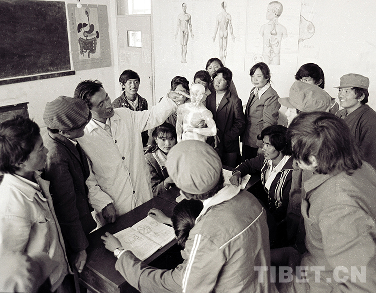 這是西藏那曲地區(qū)(現(xiàn)那曲市)中專衛(wèi)生班老師在給學(xué)生上課(唐召明1985年攝)