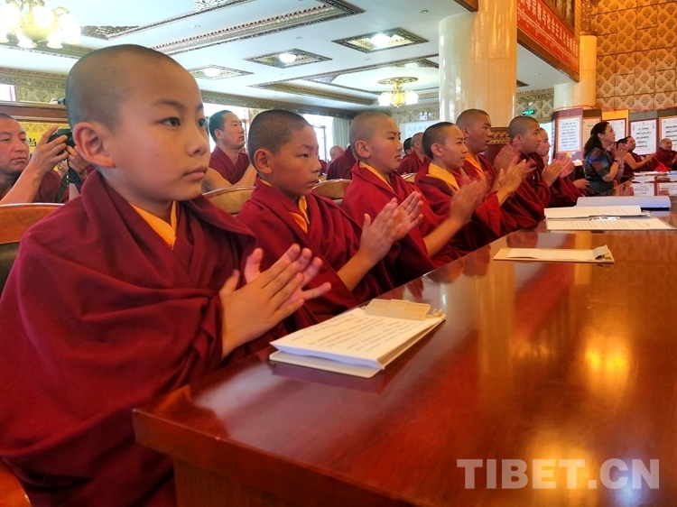 西藏佛學院第二屆少年活佛班于2018年9月開學,目前阿旺洛?!は虬涂酥榕c其他8名學員已圓滿完成小學階段學習任務,經過嚴格考試,全部達到小學階段畢業(yè)條件。