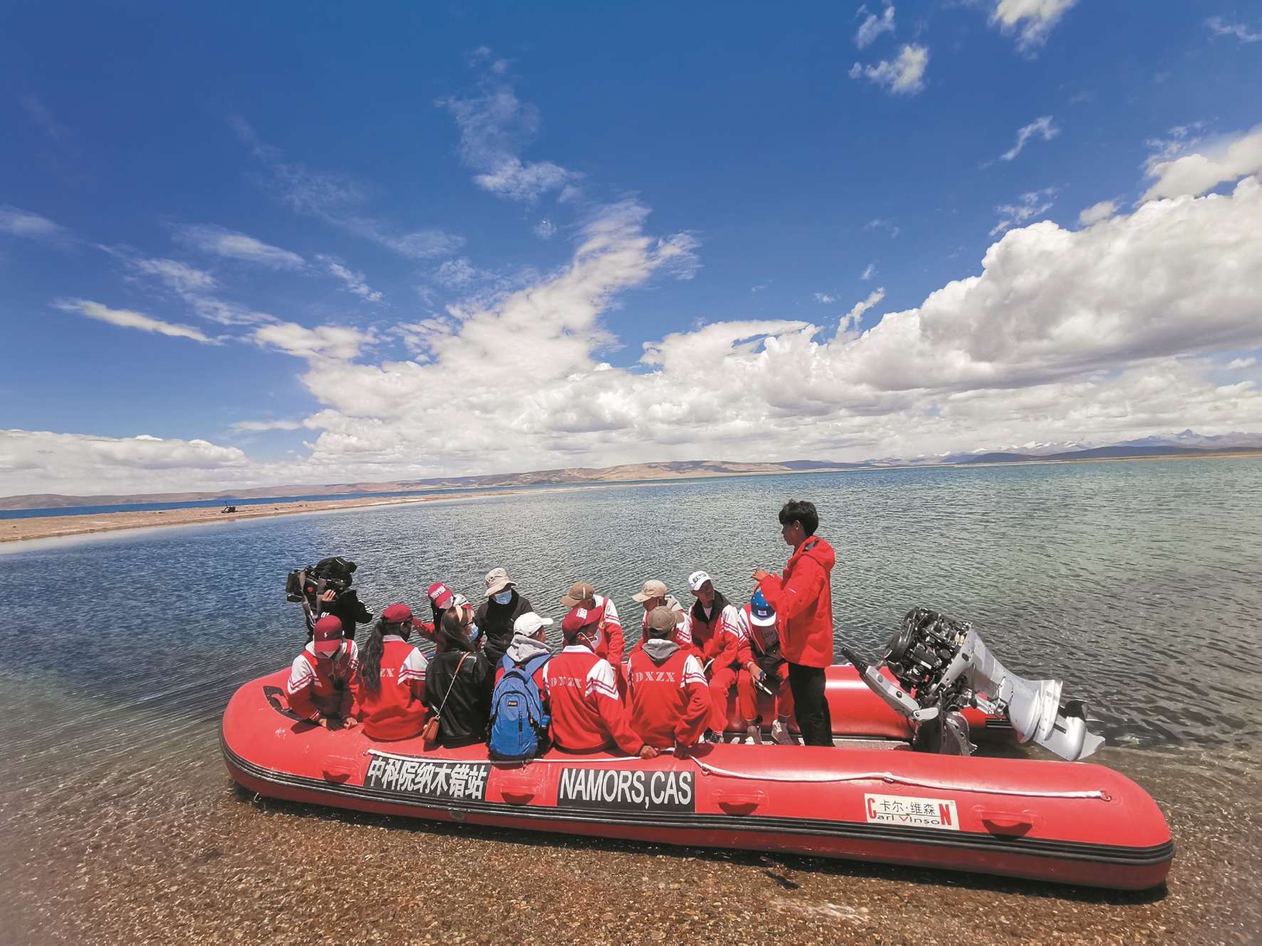 圖為青藏高原研究所的科學(xué)家們?cè)诩{木措湖邊開(kāi)展科普研學(xué)實(shí)踐活動(dòng)。拉薩融媒記者 滿文妍攝