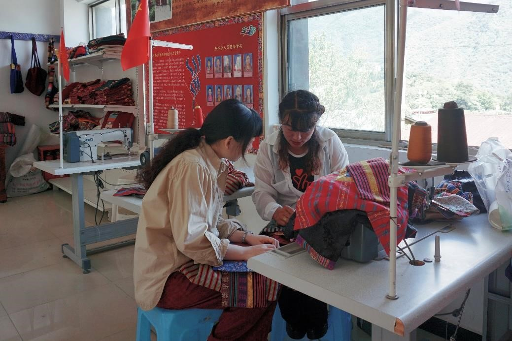 支隊成員向當(dāng)?shù)厝藢W(xué)習(xí)民族服裝制作工藝