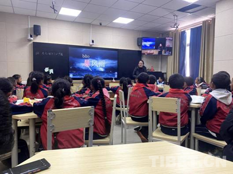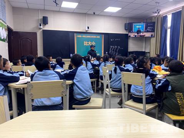 圖為西藏自治區(qū)那曲市比如縣達(dá)塘鄉(xiāng)的孩子們正通過多媒體系統(tǒng)上課 攝影:扎桑