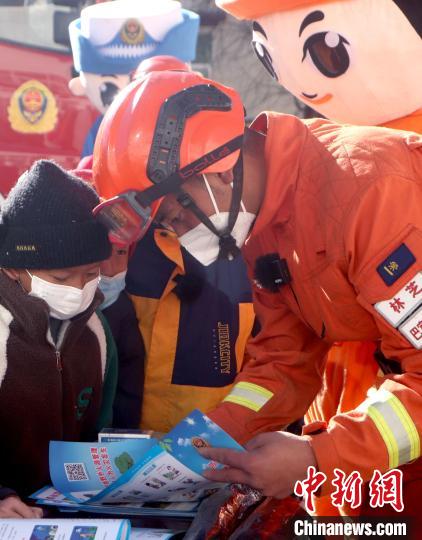 森林消防隊員正在為小朋友們講解防災減災知識?!×种ナ猩窒拦﹫D