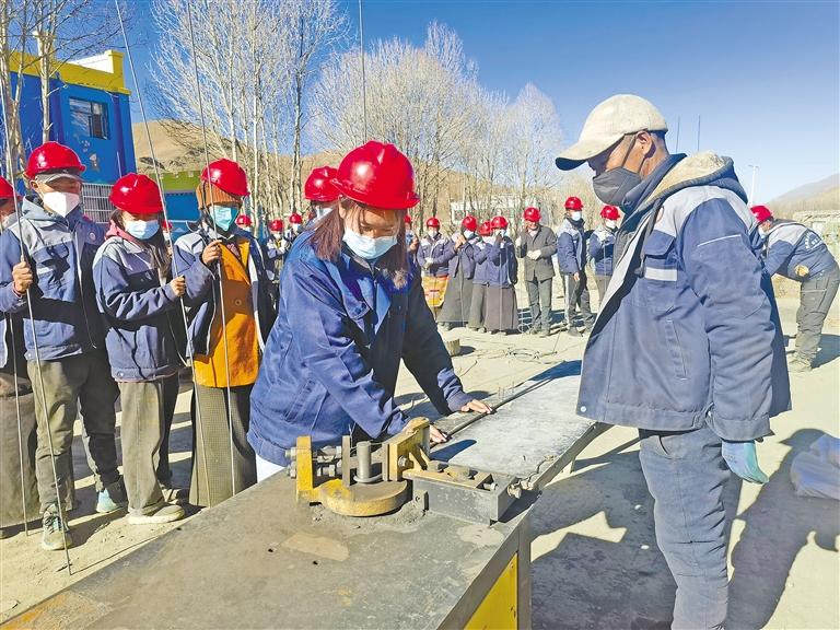 圖為江孜縣重孜鄉(xiāng)努康村群眾正搶抓農(nóng)閑時(shí)間,參加鋼筋工培訓(xùn)。 記者 陳林 攝