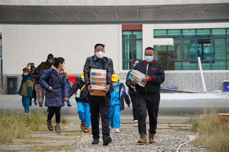 在拉薩市第八中學(xué)校門口,學(xué)生們滿懷希冀與欣喜,來(lái)到闊別已久的校園,校園內(nèi)恢復(fù)了往日的熱鬧。學(xué)生們?cè)诩议L(zhǎng)的陪同下背著行囊,拖著行李箱回到各自寢室。衛(wèi)生大掃除是必不可少,他們對(duì)床鋪和個(gè)人用品進(jìn)行了整理。隨后,同學(xué)們有序完成了新書(shū)本的領(lǐng)取,感受著翻開(kāi)書(shū)本泛出的陣陣墨香。與自己的姓名一起簽在書(shū)本扉頁(yè)的還有新學(xué)期的美好愿景。