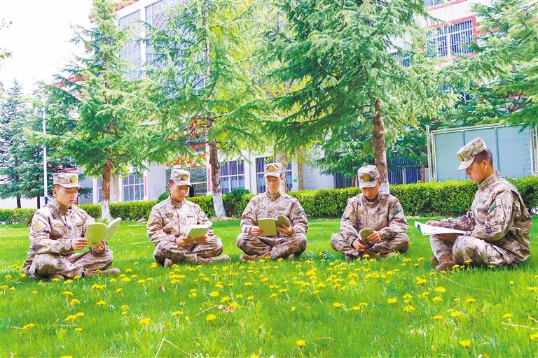 圖為西藏拉薩警備區(qū)某團(tuán)官兵利用休息之余在營(yíng)區(qū)內(nèi)看書。付枰凱 記者 趙文慧 攝
