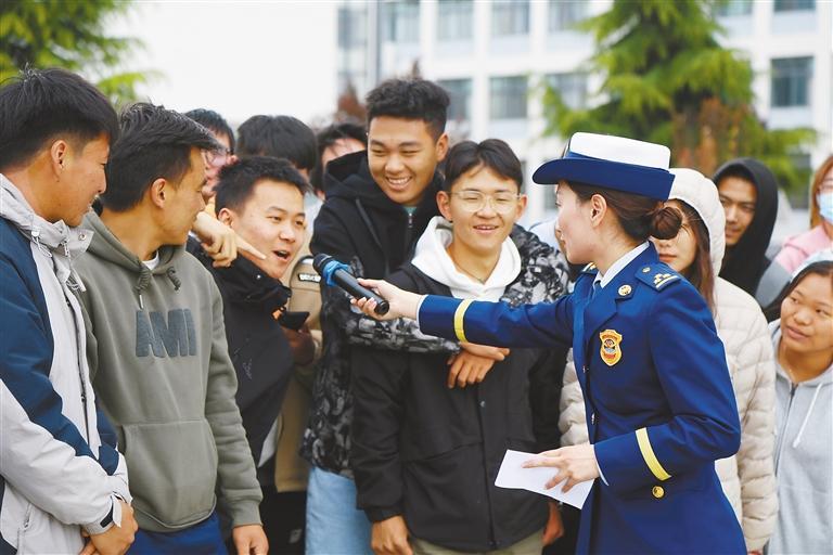 消防宣傳員在西藏大學(xué)開展消防安全有獎知識問答。