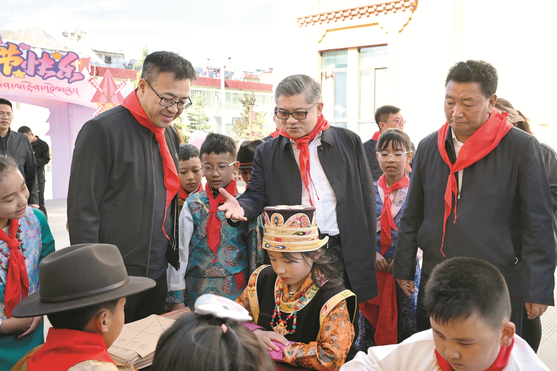 夏日的拉薩陽(yáng)光明媚,操場(chǎng)上,孩子們正在開(kāi)展“六一”兒童節(jié)文藝匯演活動(dòng),王強(qiáng)一行興致勃勃地觀看演出,對(duì)孩子們積極向上、充滿活力的精彩表演連連鼓掌,向孩子們送去了節(jié)日的祝福,希望大家牢記習(xí)近平總書(shū)記的囑托,勤奮學(xué)習(xí)、掌握本領(lǐng),努力成為新時(shí)代社會(huì)主義建設(shè)者和接班人。希望廣大教師要牢記為黨育人、為國(guó)育才使命,引導(dǎo)他們扣好人生第一粒扣子,努力培養(yǎng)有理想、有道德、有文化、有紀(jì)律的時(shí)代新人。