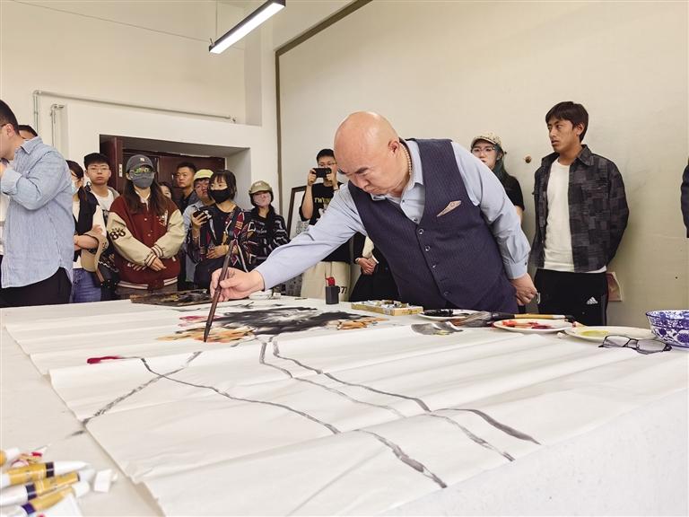 6月5日,由國家藝術(shù)基金支持,北京畫友藝術(shù)交流中心主辦的《意境》唐詩主題畫展在西藏大學藝術(shù)學院成功舉辦。此次主題畫展有賈平西、劉曦林、張松等20余位藝術(shù)家作品參展。中國藝術(shù)研究院文學藝術(shù)院專職畫家、國家一級美術(shù)師林維與南開大學藝術(shù)與美學研究院副院長、博士生導師尹滄?,F(xiàn)場揮毫潑墨、即興發(fā)揮,給西藏大學獻上了兩幅圖。