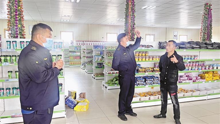 為拉薩市市場監(jiān)管局執(zhí)法人員在學校附近的商超進行檢查。記者 央金 攝