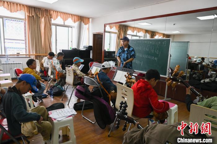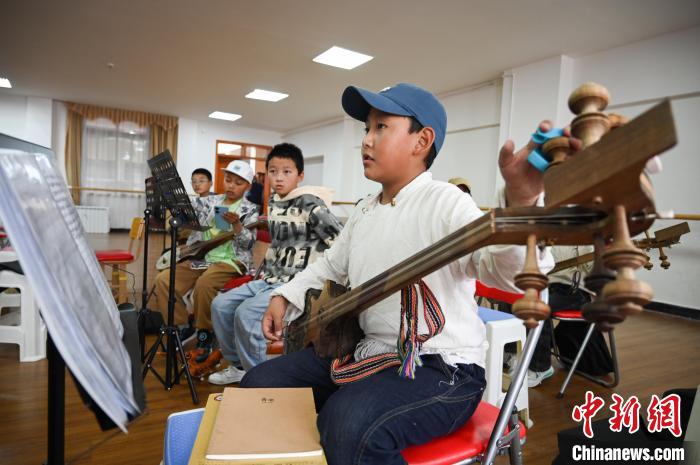7月30日,在西藏自治區(qū)群藝館(區(qū)非遺中心),旦增龍多在教授扎念琴。中新社記者 趙朗 攝