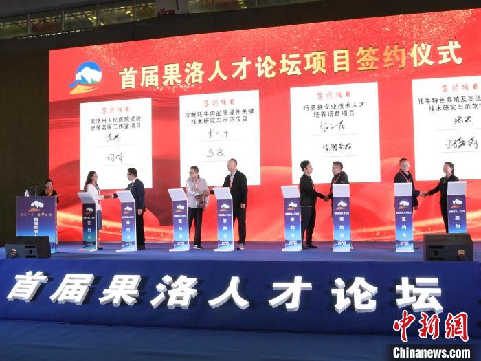 圖為首屆果洛人才論壇項(xiàng)目簽約儀式現(xiàn)場(chǎng)。果洛州委宣傳部供圖