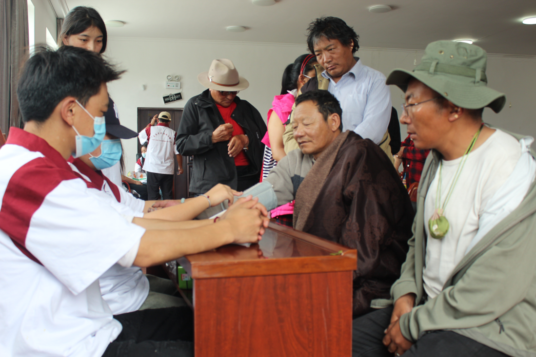 活動期間,“民族團結(jié)返鄉(xiāng)實踐團”師生先后到森布日高海拔生態(tài)搬遷安置點和那曲駐拉薩辦事處等,與西藏防治艾滋病協(xié)會工作人員共同開展“中醫(yī)藥健康進西藏 民族團結(jié)我先行”的愛心醫(yī)療志愿服務(wù),為當?shù)乩习傩蘸屠细刹块_展針對性的中醫(yī)藥知識宣講,還為大家測血壓、血糖,共同體驗中醫(yī)藥花茶及香囊的制作過程,免費發(fā)放藥物等。