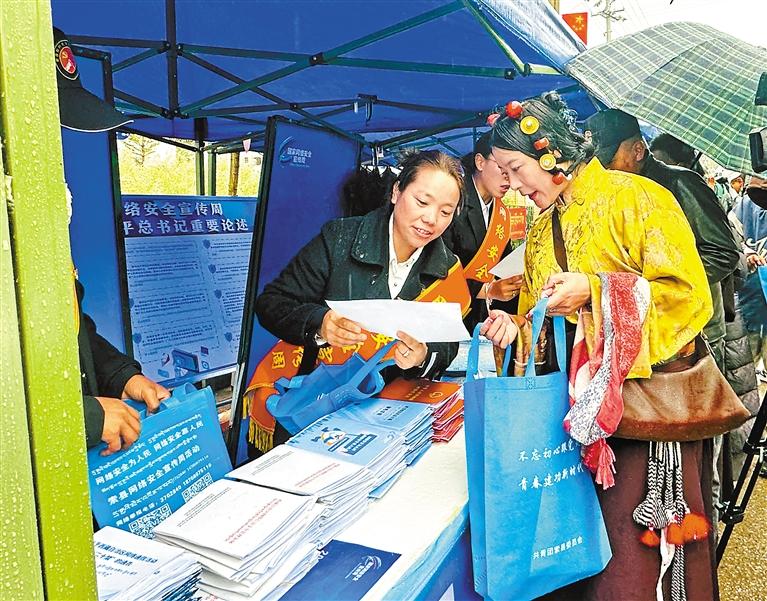 圖為那曲市索縣網(wǎng)信辦工作人員向過(guò)往群眾講解網(wǎng)絡(luò)安全知識(shí)。記者 曲珍 攝
