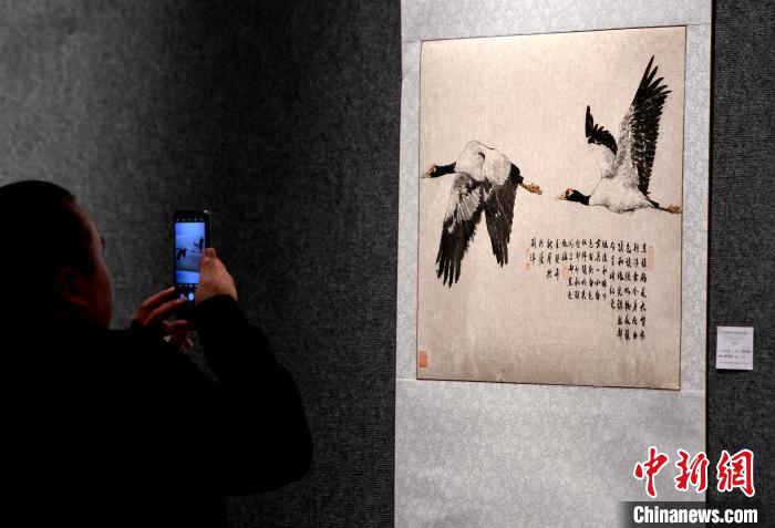 圖為觀眾正在拍攝展覽中的美術作品。李林 攝