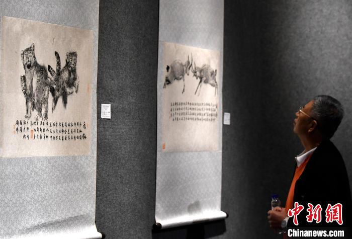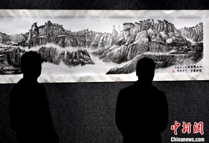 圖為觀眾正在欣賞展覽中的美術作品。李林 攝