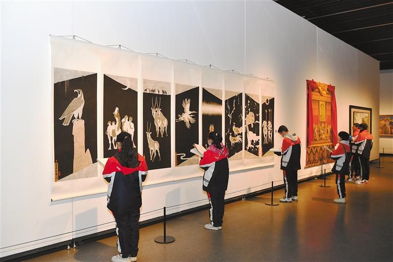 圖為11月16日,拉薩阿里河北完全中學(xué)繪畫社團的孩子們走進西藏美術(shù)館參觀臨摹藝術(shù)畫作。記者 次仁平措 丹增群培 攝