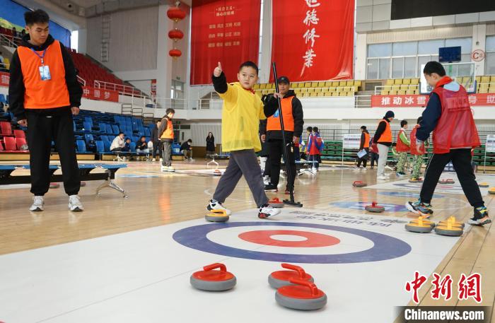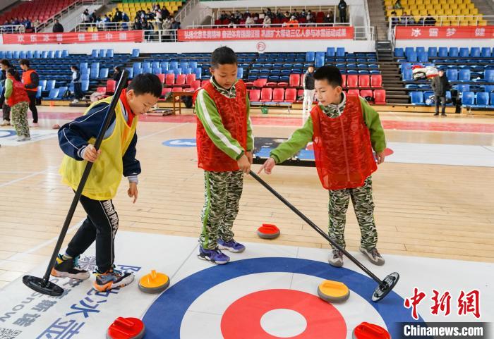 青海冰雪運(yùn)動會賽場:冰壺少年顯身手