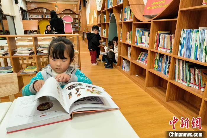 12月22日晚,一位兒童在墨脫縣圖書館內(nèi)翻看書籍?!≈行律缬浾?江飛波 攝